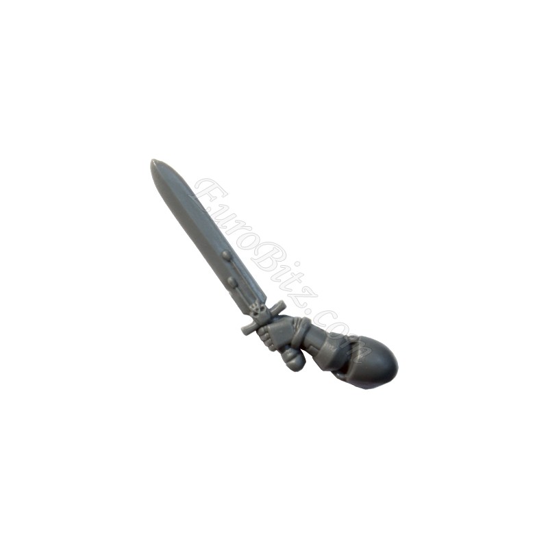 Bras gauche de l'officier Space Marine avec épée énergétique tendue. Indispensable pour faire sauter les sauvegardes d'armures de vos adversaires bien équipés!